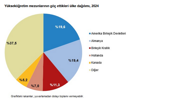 Bir lisans programını tamamlayanların göç etmek için tercih ettikleri ilk beş ülke sırasıyla Amerika Birleşik Devletleri (yüzde 19,6), Almanya (yüzde 19,4), Birleşik Krallık (yüzde 11,3), Hollanda (yüzde 7,0) ve Kanada (yüzde 5,2) oldu.
