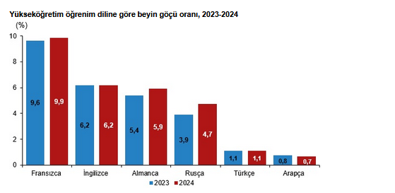 Öğrenim diline göre mezunların beyin göçü oranları incelendiğinde, Fransızca eğitim alan mezunlar yüzde 9,9 ile en yüksek beyin göçü oranına sahip oldu. Fransızcayı, İngilizce (yüzde 6,2), Almanca (yüzde 5,9) ve Rusça (yüzde 4,7) takip etti.